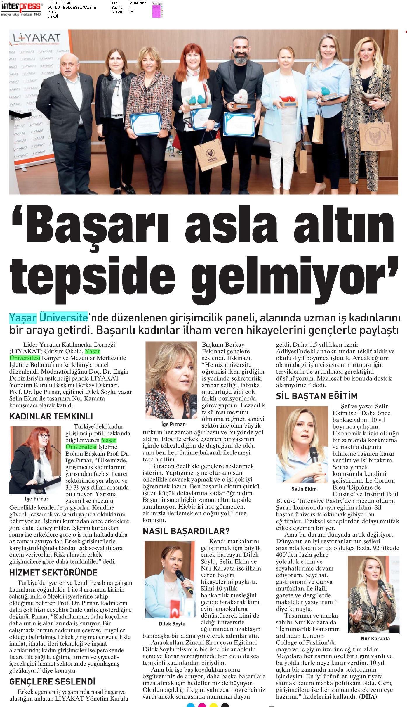 Lider Yaratıcı Katılımcılar Derneği ( Liyakat ) ''Girişim Okulu'' Yaşar Üniversitesi Kariyer ve Mezunlar Merkezi ile Yaşar Üniversitesi İşletme Bölümü katkılarıyla ''KADIN GİRİŞİMCİLİĞİ'' teması ile Selçuk Yaşar Kampüsü' nde yapıldı.