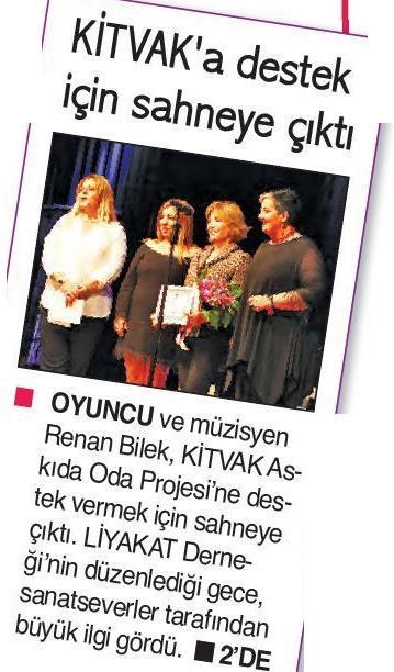 Liyakat Derneği katkılarıyla Renan Bilek Konseri, Bostanlı Suat Taşer Tiyatrosu'nda ve Kitvak'ın Askıda Oda Projesi yararına gerçekleştirildi.